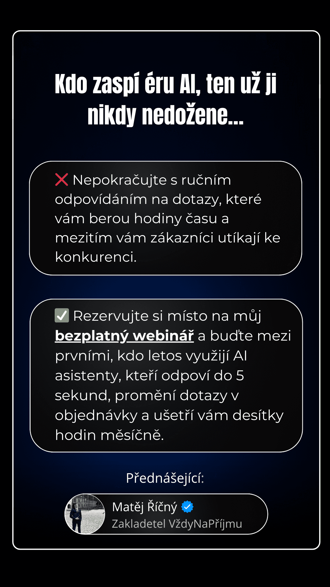 Dnes pomáhám českým firmám nasazovat AI asistenty, kteří reálně vydělávají peníze – ne jen